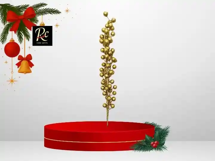 Embellece tus decoraciones festivas con esta elegante rama dorada con pelotitas doradas. Perfecta para añadir un toque de lujo y brillo a tu hogar, ideal para adornos de Navidad y decoraciones de fiestas.