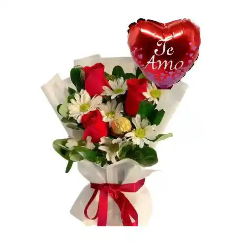 RAMI 3 ROSAS CON MARGARITAS 1 BOMBON Y GLOBITO