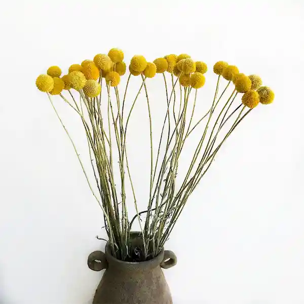 Ramo de Craspedias a Granel de 10 Varas. Estas “Pelotitas Amarillas Globosas” se Caracterizan Por su Durabilidad; Simpleza y Color. Destacan También en su Proceso de Secado; Una Vez Sin Agua Sigues Los Pasos Para Lograr el Proceso y Quedan Para Siempre.