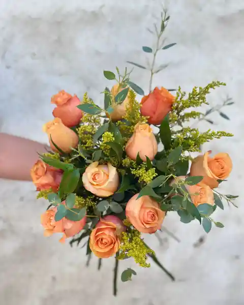 RAMO DE 12 ROSAS ECUATORIANAS ARREGLADAS CON FOLLAJE , PAPEL DE COLOR Y CINTA DE SATIN. COLOR DE ROSAS DISPONIBLES ROJO-BLANCO-ROSADO-FUCSIA-DAMASCO.