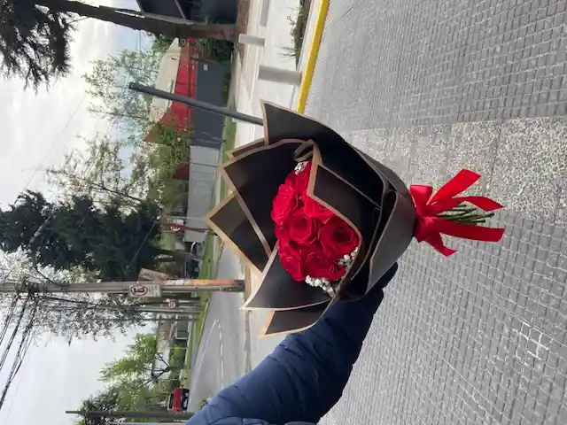 Ramo de 12 rosas en papel decorado (color del papel varía)