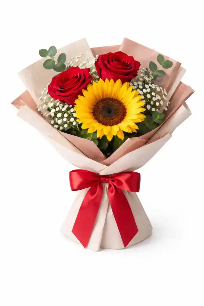 Ramo de 1 girasol,2gerberas y follaje