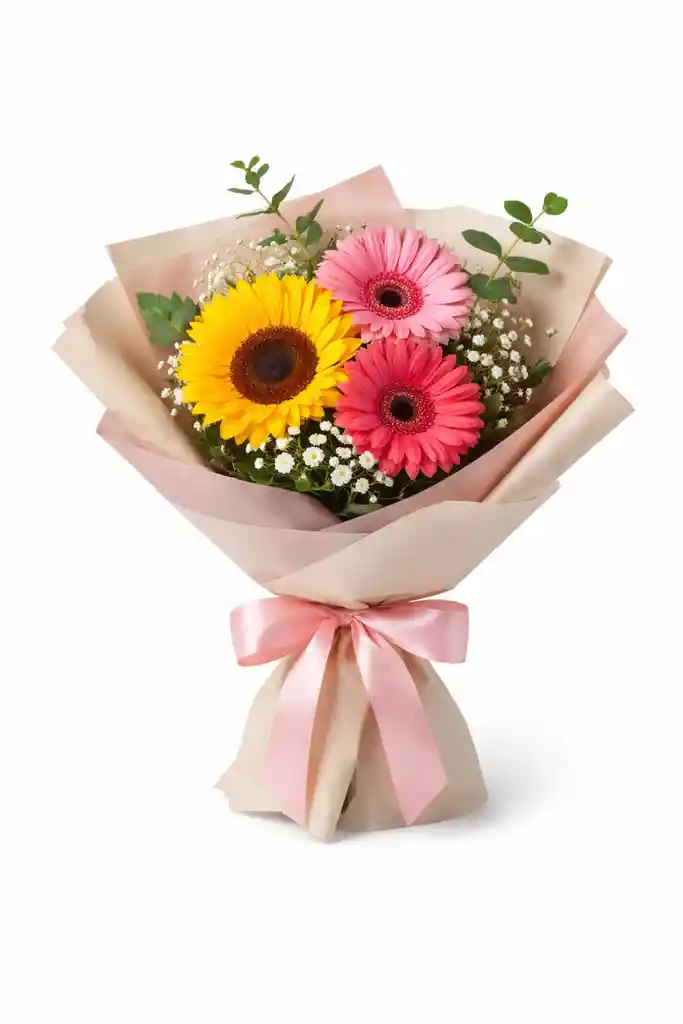 Ramo de 1 girasol,2gerberas y follaje