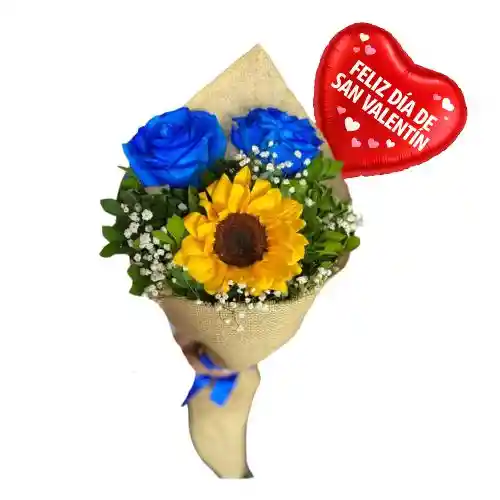 RAMO 2 ROSAS 1 GIRASOL Y GLOBITO