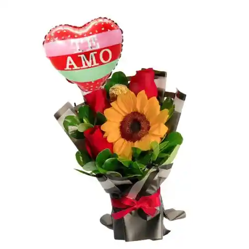RAMO 3 ROSAS 1 GIRASOL 1 BOMBON Y GLOBITO