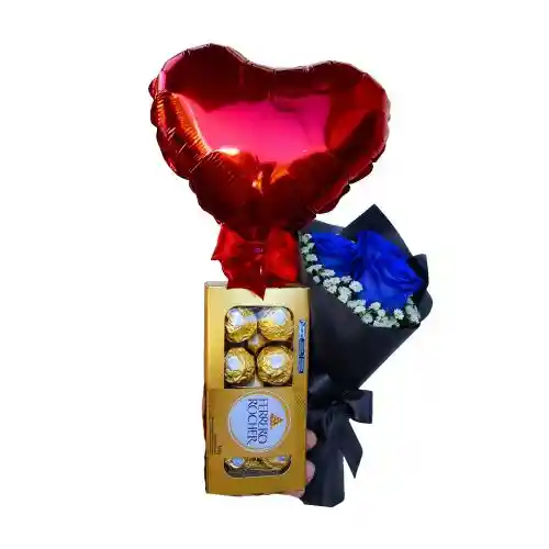 RAMO 3 ROSAS AZUL CON GYPSUM FERRERO ROCHER DE 100G CON GLOBITO