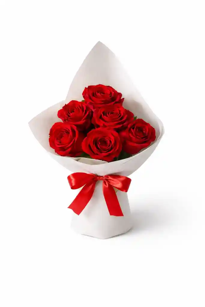 RAMO 6 ROSAS ROJAS EN PAPEL BLANCO