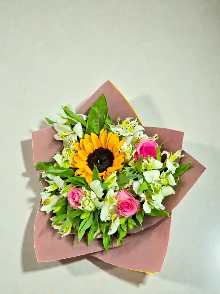Ramo alegre Rosas, Astromelias y girasol