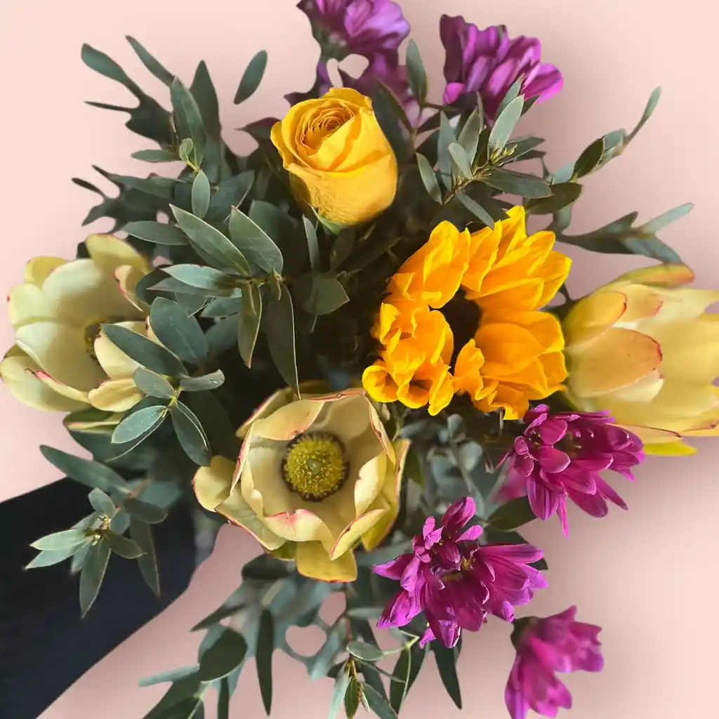 Ramo de Leucadendros, Lady y Girasol, dando la bienvenida a la primavera