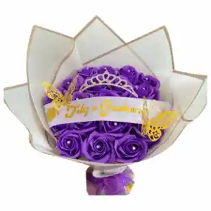 Ramo Buchón de 25 Rosas Eternas de Jabón Moradas con cinta