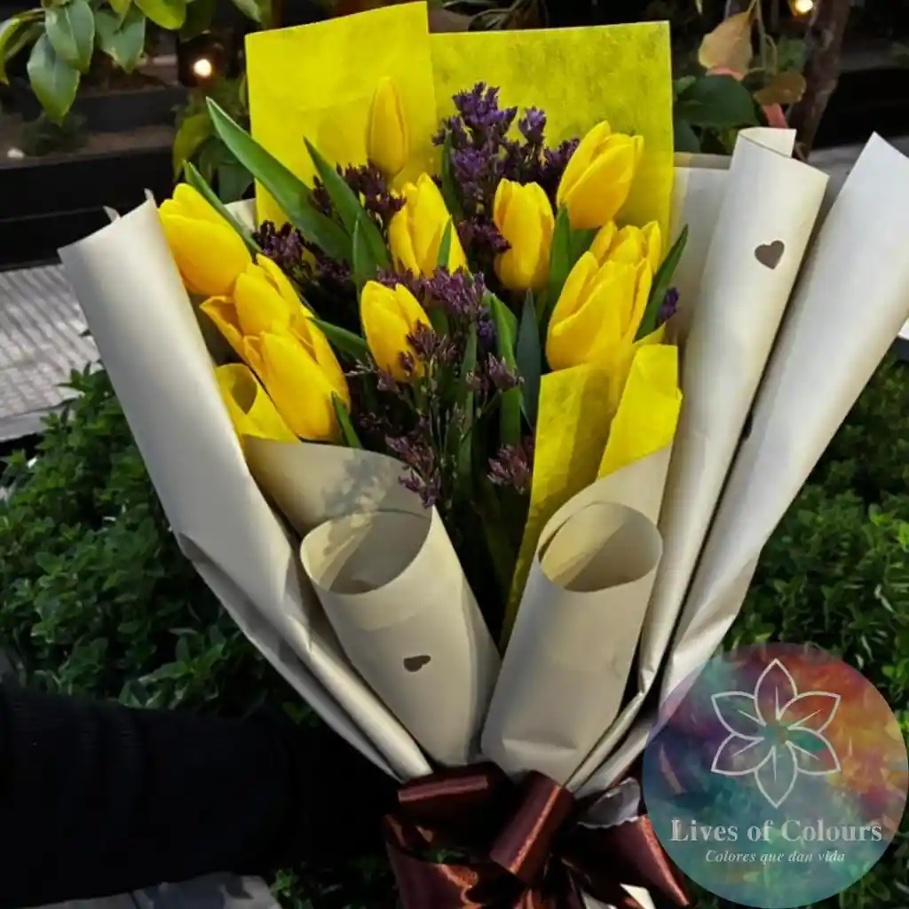 Hermoso ramo de 10 Tulipanes Amarillos, Regalo ideal para sorprender a alguien el dia de hoy