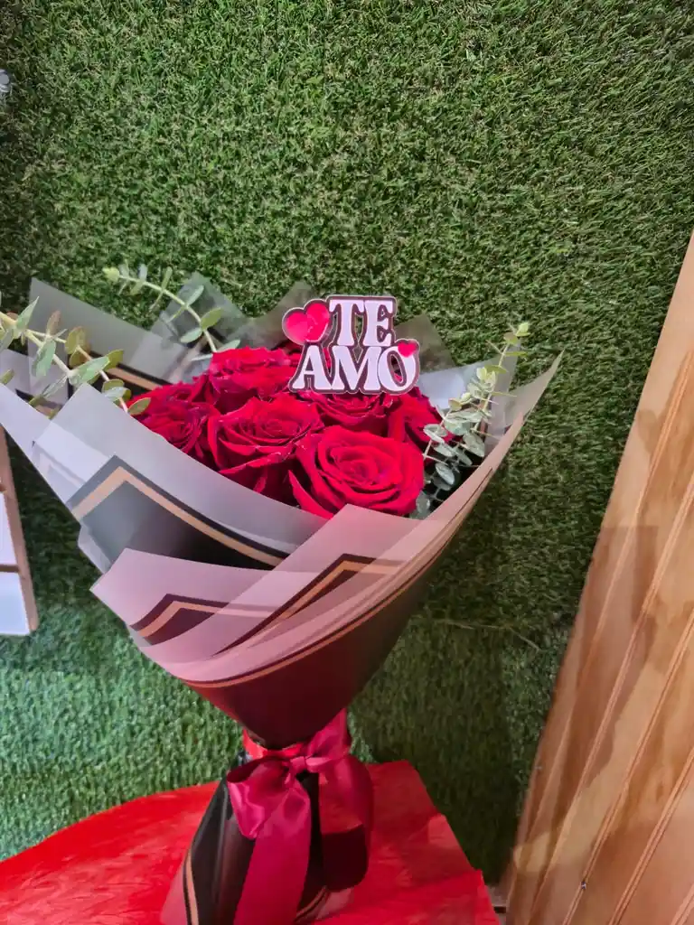 Ramo de 12 Rosas Naturales envueltas en papel coreano + lazo decorativo+ topper Te Amo. "NO NECESITA FLORERO", especial para sorprender a esa persona especial