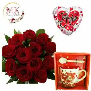 Ramo de 12 Rosas, Taza Te Amo y Globo