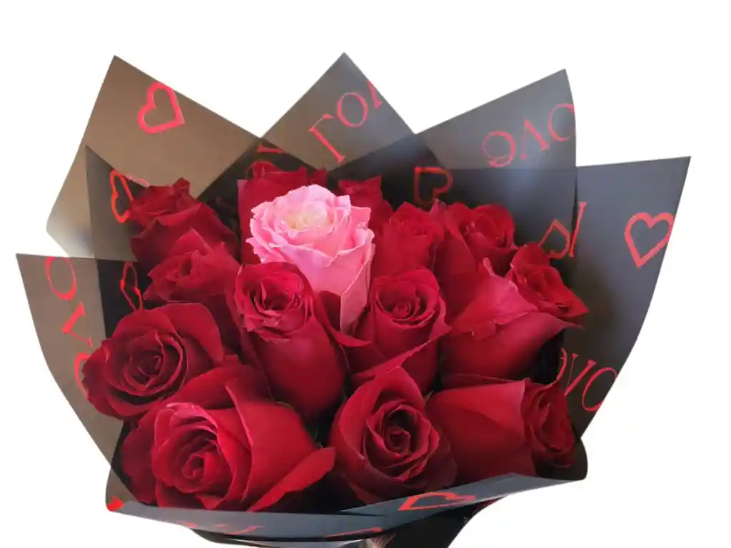 Ramo de 14 Rosas Rojas y 1 Rosada