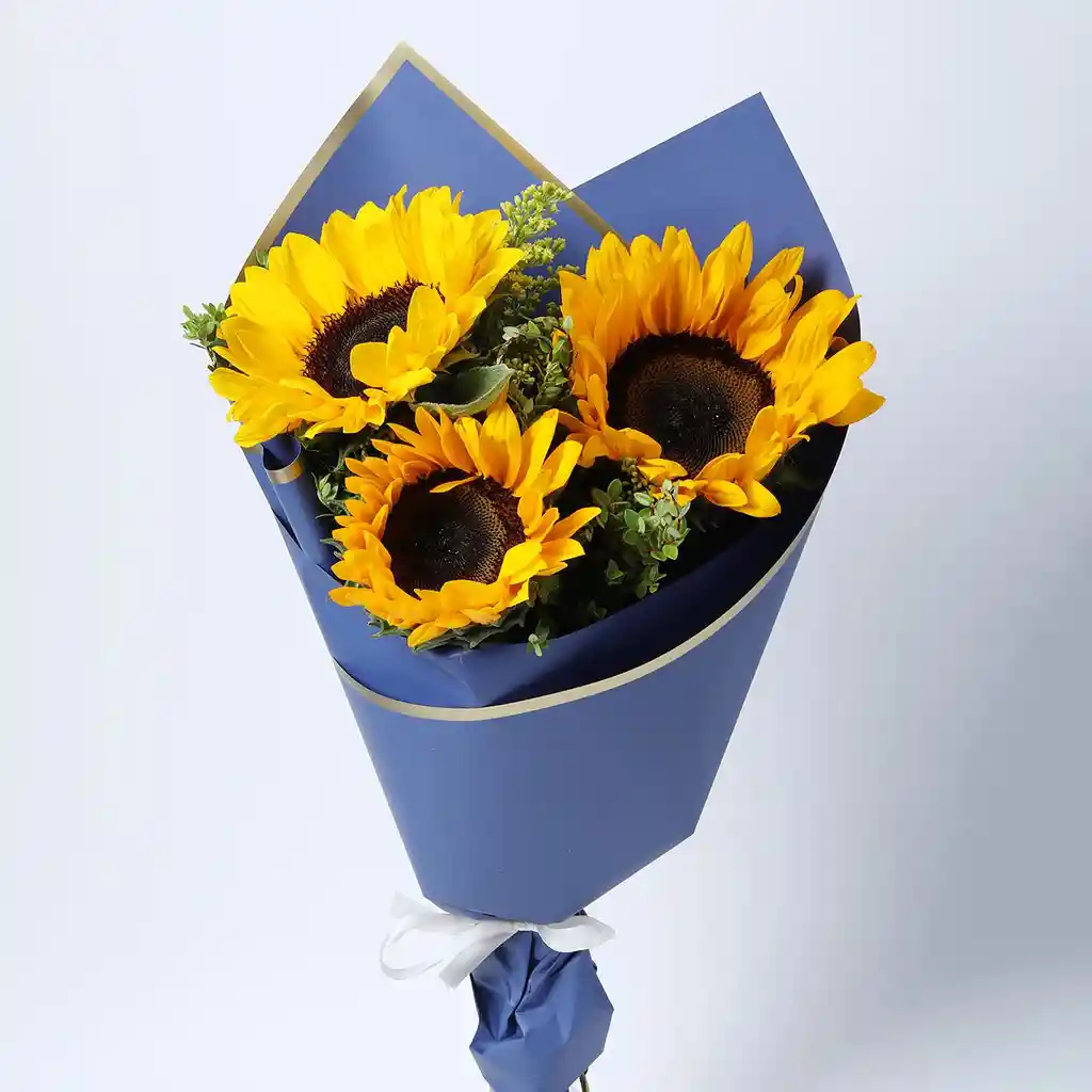 Ramo de 3 Girasoles Frescos 🌻 ¡Alegra el día de alguien especial! Hermoso ramo compuesto por 3 girasoles frescos de primera calidad, acompañados de elegante follaje verde que realza la belleza natural de estas flores radiantes. Características: 3 girasoles frescos y vibrantes Follaje verde decorativo incluido Envuelto en papel empavonado Cinta de satin como toque distintivo Perfecto para: Cumpleaños y celebraciones Sorpresas románticas Decoración del hogar Regalo de buenos deseos Momentos especiales Entrega el mismo día en Santiago Flores frescas seleccionadas cuidadosamente para garantizar la máxima duración y belleza. Los girasoles simbolizan alegría, vitalidad y energía positiva. ¡Un regalo que transmite felicidad instantánea! 📦 Incluye florero de cristal 🚚 Entrega rápida y segura 🌿 100% frescas y naturales