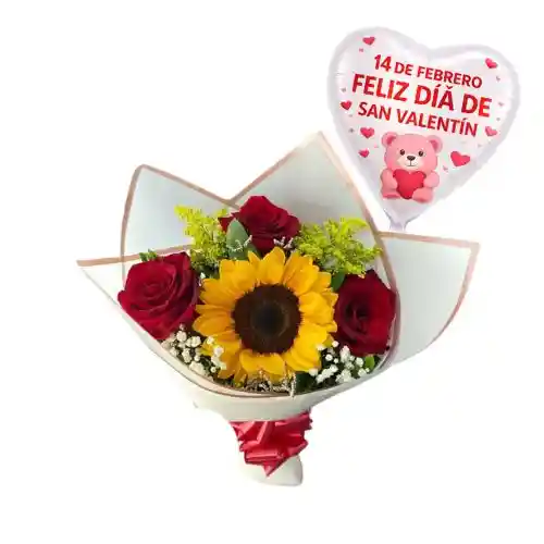 RAMO DE 3 ROSAS 1 GIRASOL Y GLOBITO