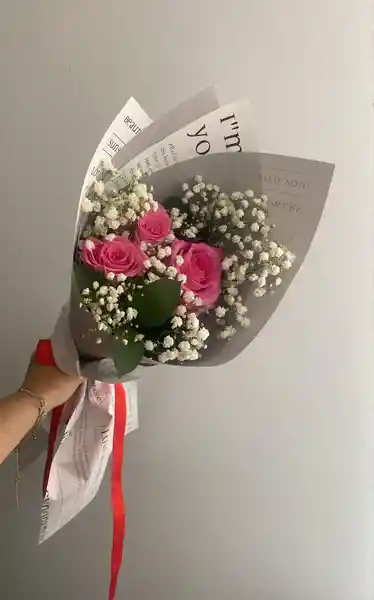 1 Ramo de 3 Rosas Rosadas Con Follaje Del Dia.