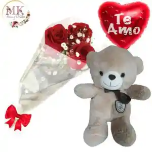 Ramo de 3 Rosas, Peluche 30cm y Globo