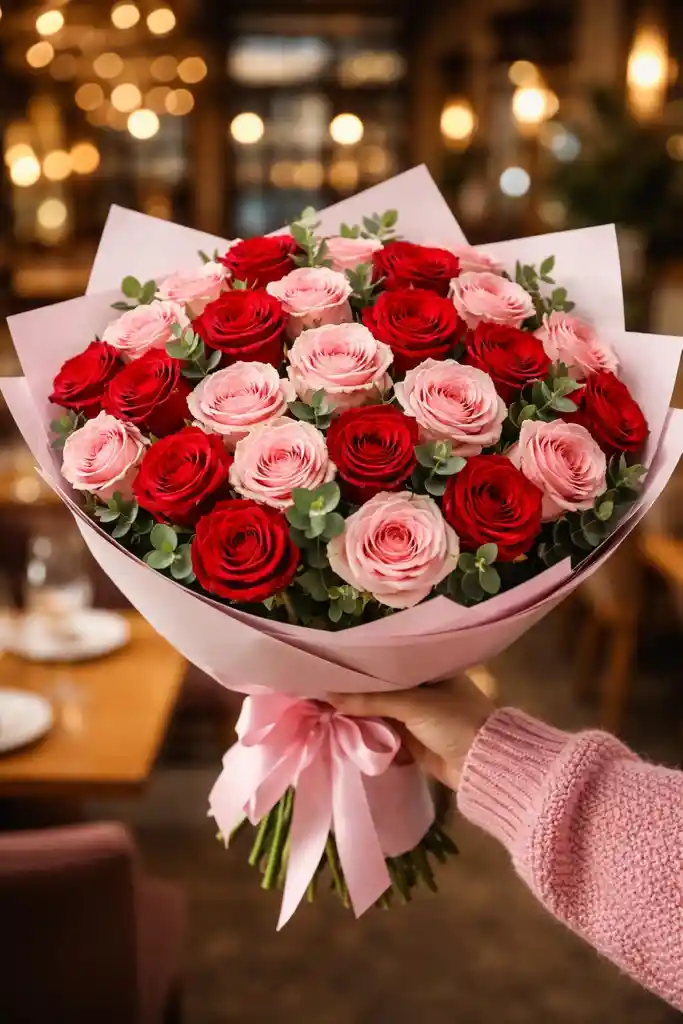 30 rosas mixta , las rosas rosadas 🌷 Imagen referencial. Cada ramo es único ✨ El tono de las rosas rosadas puede variar levemente según la disponibilidad diaria y la floración natural del día. Esto hace que cada arreglo tenga su propia belleza y encanto, manteniendo siempre la calidad, frescura y armonía que nos caracteriza. 💗 Siempre respetamos la gama rosada y las rosas Rojas cuidando cada detalle para entregar un ramo especial.