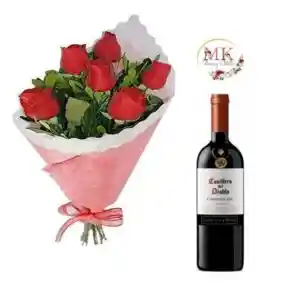 Ramo de 6 Rosas y Vino 750cc
