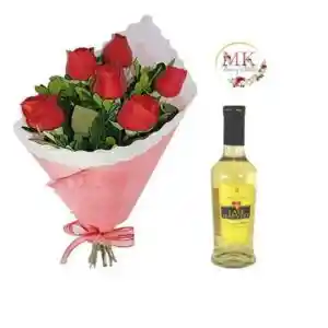 Ramo de 6 Rosas y Vino Late Harvest