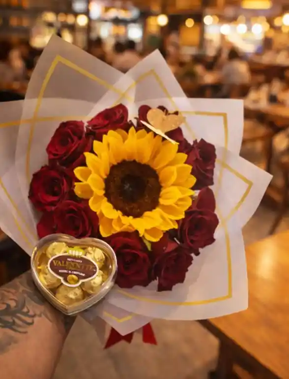 8 Rosas + 1 girasol + chocolate