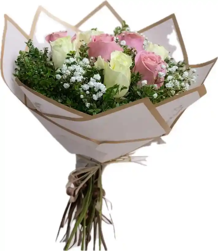 RAMO DE 8 ROSAS ROSADAS Y BLANCAS