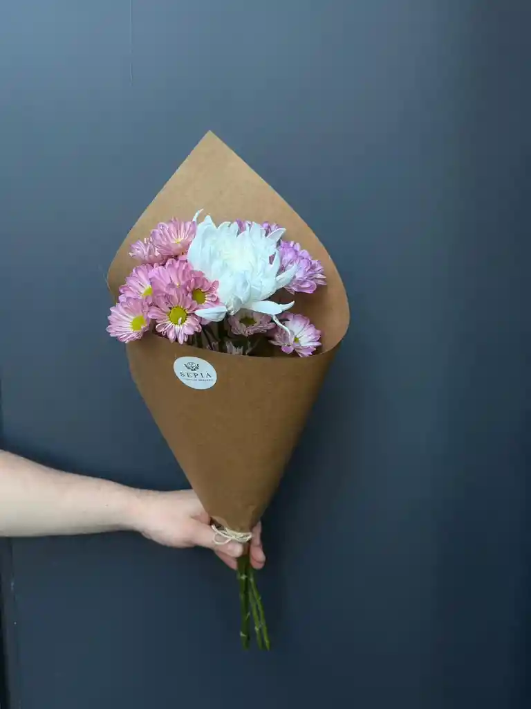 Ramo de 3 crisantemos surtidos. Color según disponibilidad. Foto referencial.
