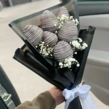6 FRUTILLAS DE CHOCOLATE NEGRO CON LINEAS BLANCAS