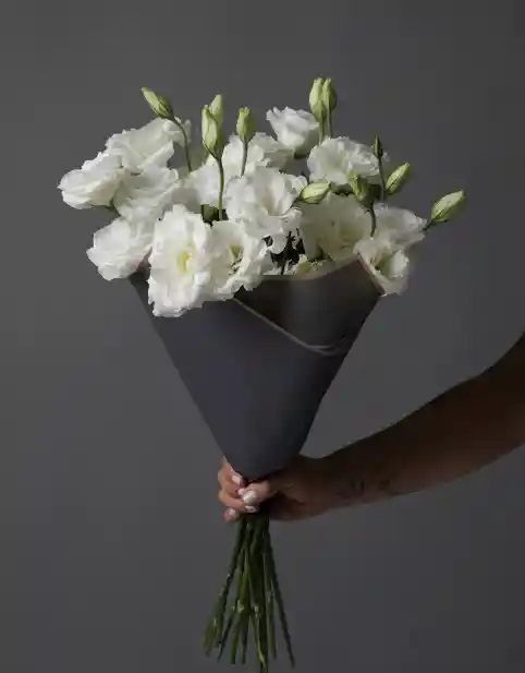 Este ramo incluye 20 varas de lisianthus blanco producción propia. Viene envuelto en papel e incluye tarjeta para escribir un mensaje si lo deseas.