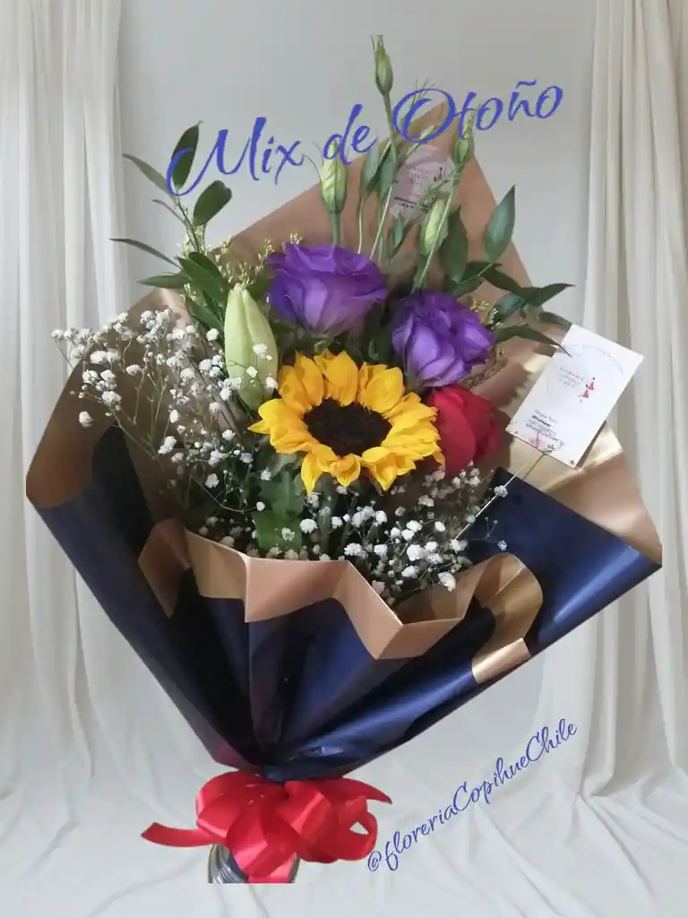 "Un ramo con alma, diseñado para dejar una impresión duradera" Este diseño floral cautiva a primera vista, siendo un majestuoso ramo combina flores icónicas en una fisión de color, textura y simbolismo, cuidadosamente envueltas en papel de alta calidad y selladas con una cinta de satin para un acabado de lujo. Este incluye Rosas rojas importadas, simbolo de amor profundo y pasión girasoles, que aportan luz, alegría y energía lilium blanco, elegante y puro, ideal para transmitir paz y admiración vara de lisianthus lila, toque sutil de ternura y espiritualidad acompañado de un follaje fresco de dos v aras de ruscus y gypsophilia blanca, que enmarcan y realzan cada flor con armonía. Este ramo es perfecto para sorprender en aniversarios, celebraciones especiales o como un regalo lleno de intención y elegancia. incluye tarjeta dedicatoria personalizada.