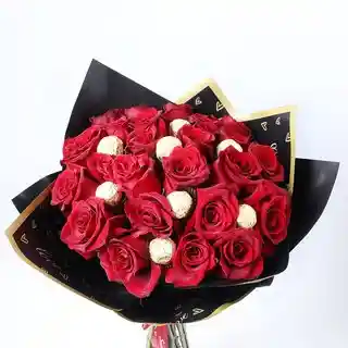 Ramo Premium De 24 Rosas Rojas Con Bombones Ferrero