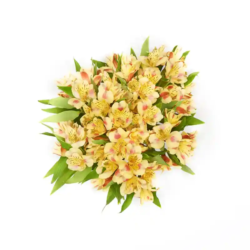 Ramo de 10 varas. Comúnmente conocida como alstromeria, es una flor importada de Colombia de hoja enroscadas, coloridas, resistentes y voluminosas. Disponible en variedad de colores. Dato Útil: Cortando los tallos (cada 3 o 4 días) al momento de cambiar el agua, da una duración de 15 días aproximadamente. Ramo premium en bello papel , incluye gypsophila (ilusiones), fino follaje verde y un hermosa cinta.