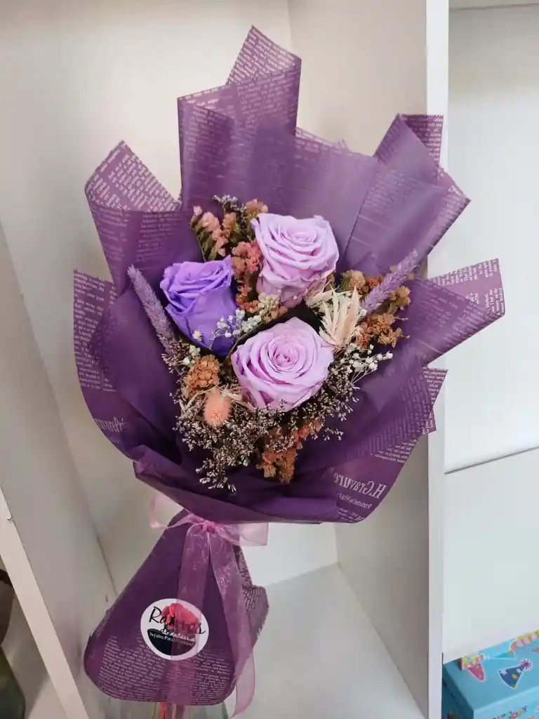 Ramo diseño premium preservado con flores naturales de alta durabilidad de al menos 4 años de colección en diseño y armado único y sofisticado para enviar o llevar a cualquier lugar del mundo