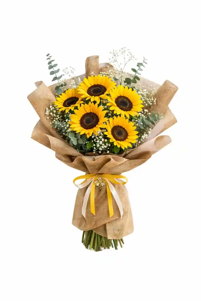 Ramo de de 5 girasoles y follaje