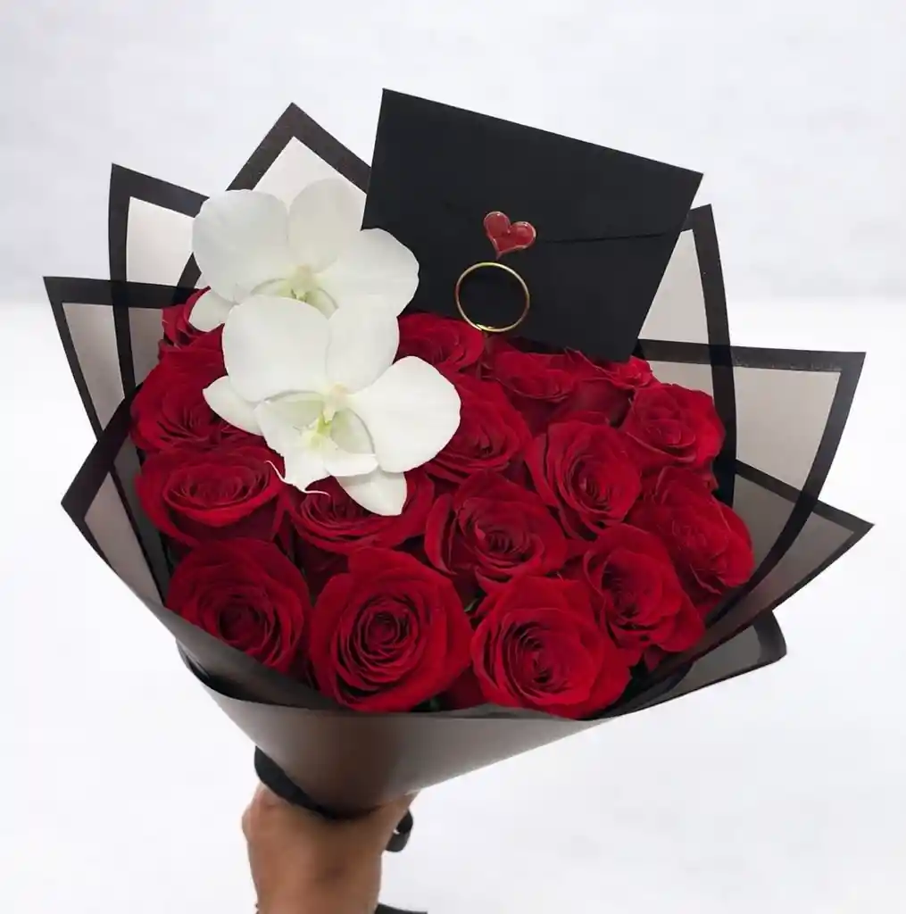 Ramo de 20 rosas naturales importadas mas 2 Orquídeas naturales