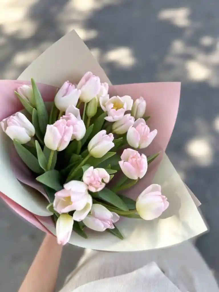 Incluye 20 varas de tulipanes de distintas aperturas en paleta de color del día envuelto en papel del día. Sorpréndete, nosotros elegimos los tulipanes más lindos y frescos del día por ti