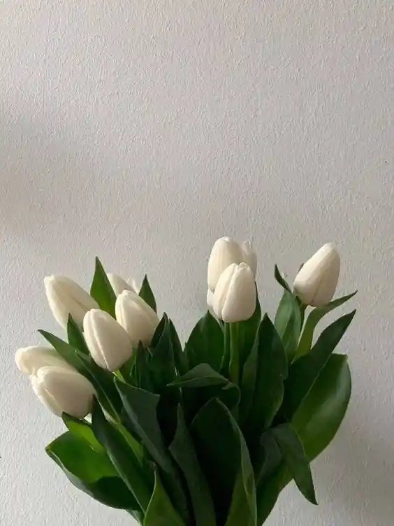 Este ramo incluye 10 varas de tulipanes frescos color blanco. Viene envuelto en papel e incluye tarjeta para escribir un mensaje si lo deseas.