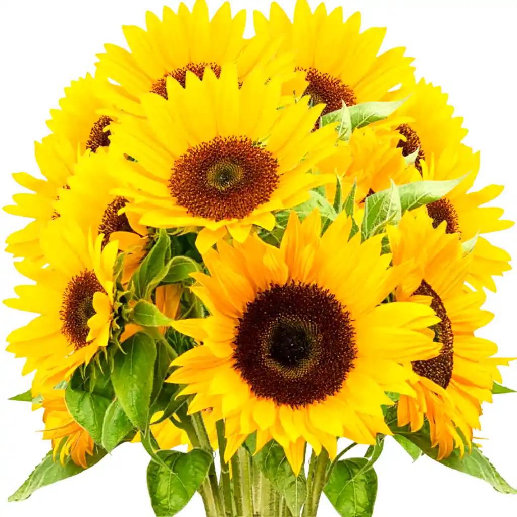 Ramo de Girasoles que incluyen papel, follaje.