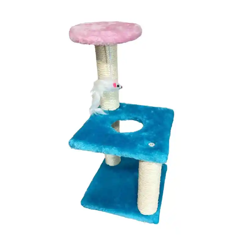 . Base elaborada en sisal natural, el cual tiene el olor especial que atrae a la mascota. . Ideal para que el gato pueda moler sus garras y hacer que no rayar el sofá y otros muebles. . El lugar más alto de esta torre está diseñada con un ratón de felpa, que puede hacer que los gatos quieren jugar. . El árbol para gatos multinivel amplía el espacio de actividad utilizable verticalmente y ofrece más espacio para que las mascotas escalen y exploren, ayudando a los gatos a estirar sus cuerpos. Especificaciones: Material: Sisal / Felpa. Color: Celeste Dimensiones: 40 x 20 cm. Contenido: 1 Torre Rascador de 3 pisos.
