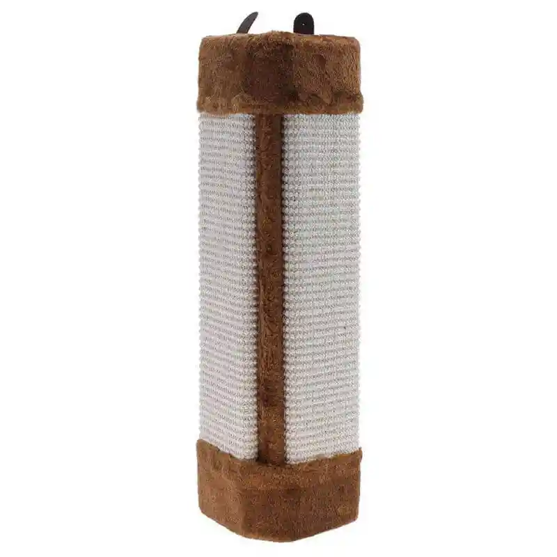 Practico rascador diseñado especialmente para ser puesto en las esquinas de las paredes de nuestra casa. Este rascador tiene como función que el gato tenga un sitio donde afilar sus uñas y evitar, de esta manera, que rasque en sitios no adecuados como muebles o sofás. Disponible en color Café