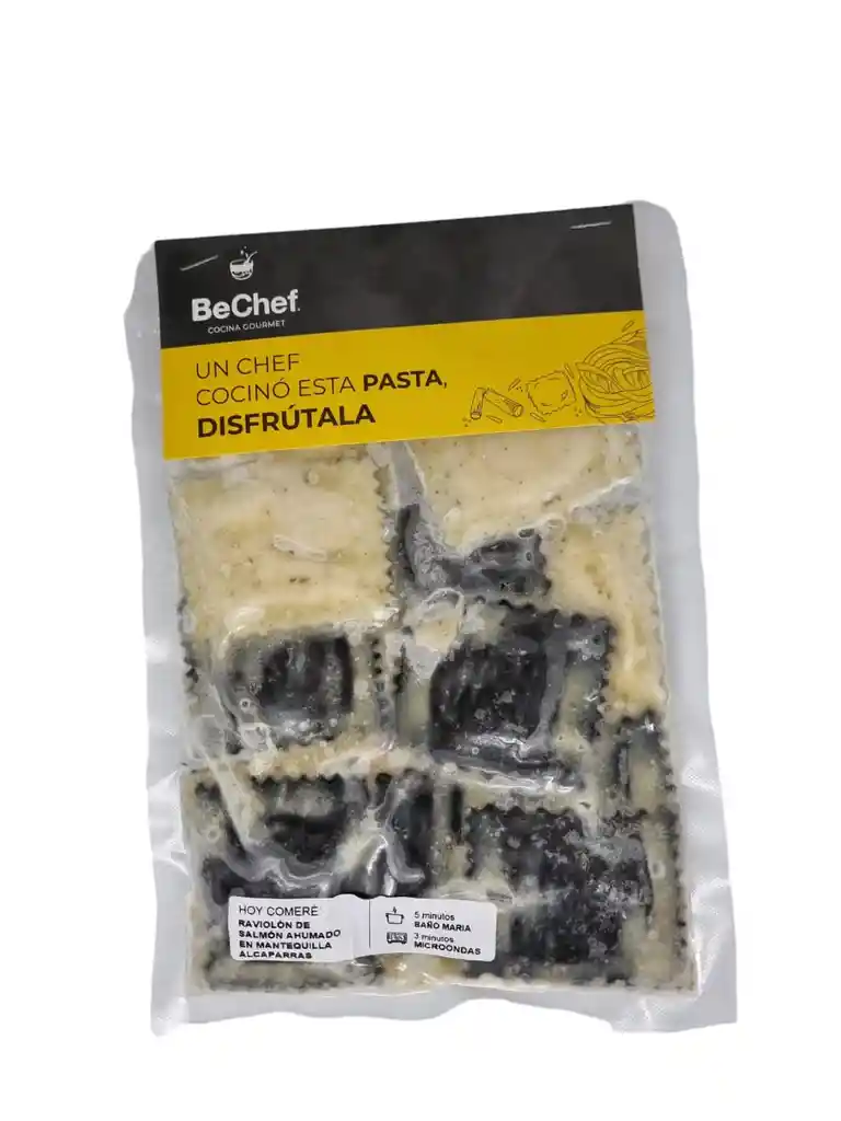 Raviolón de Salmón Ahumado en Mantequilla de Alcaparra. Producto congelado