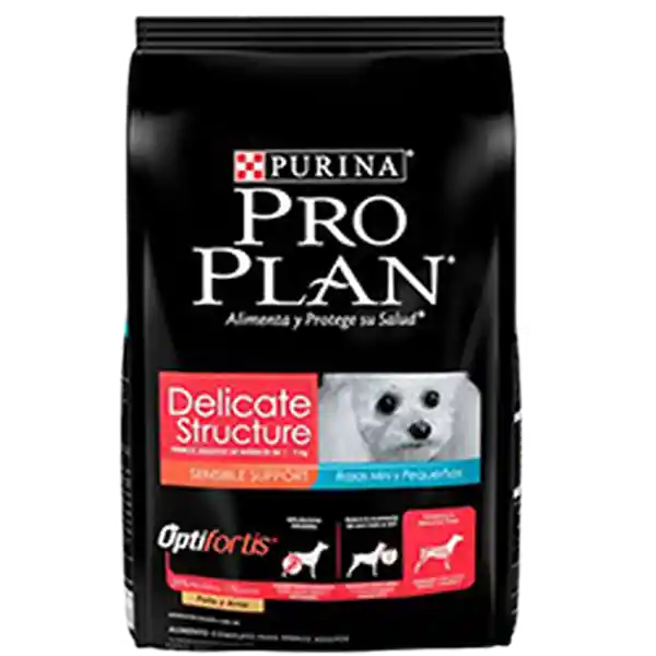 Purina Pro Plan Delicate Small Breed Con Optifortis Ofrece Nutrición de Vanguardia Que Satisface Las Necesidades Nutricionales Específicas de Perros Adultos de Razas Pequeñas Delicados y Sensibles Para Que Alcancen un Estado de Salud Óptima y un Bienestar General. Purina Pro Plan Delicate Small Breed Con Optifortis Fortalecerá Los Huesos y Dientes Además de Nutrir la Delicada Piel de Los Perros de Raza Pequeña Más Frágiles. Purina Pro Plan Ofrece un Plan de Nutrición de Última Generación Que Está Revolucionando la Forma de Alimentar y Proteger a Los Perros. Además de Ofrecer Fórmulas de la Más Alta Calidad Para Todas Las Etapas de Vida y Tamaños de Razas Purina Pro Plan Ofrece Fórmulas Especialmente Desarrolladas Para Atender Las Necesidades Nutricionales Especiales de Los Perros. Las Ventajas de Este Producto Son: Sistema Digestivo Saludable: Prebióticos Bioactivos Promueven la Estabilidad de la Microflora Intestinal de Los Perros Protegiéndolos de Problemas Digestivos Como la Diarrea y Promoviendo Una Mejor Absorción de Nutrientes Para Una Salud Óptima Favorece Una Piel Saludable y un Pelaje Lustroso: Balance Óptimo de Nutrientes Como Vitaminas a Zinc y Ácidos Grasos Omega 3 y Omega 6 Para Mantener Una Piel Sana y un Pelaje Brillante. Articulaciones Saludables: Glucosamina de Fuentes Naturales Para Mantener Articulaciones Sanas y Una Buena Movilidad.
