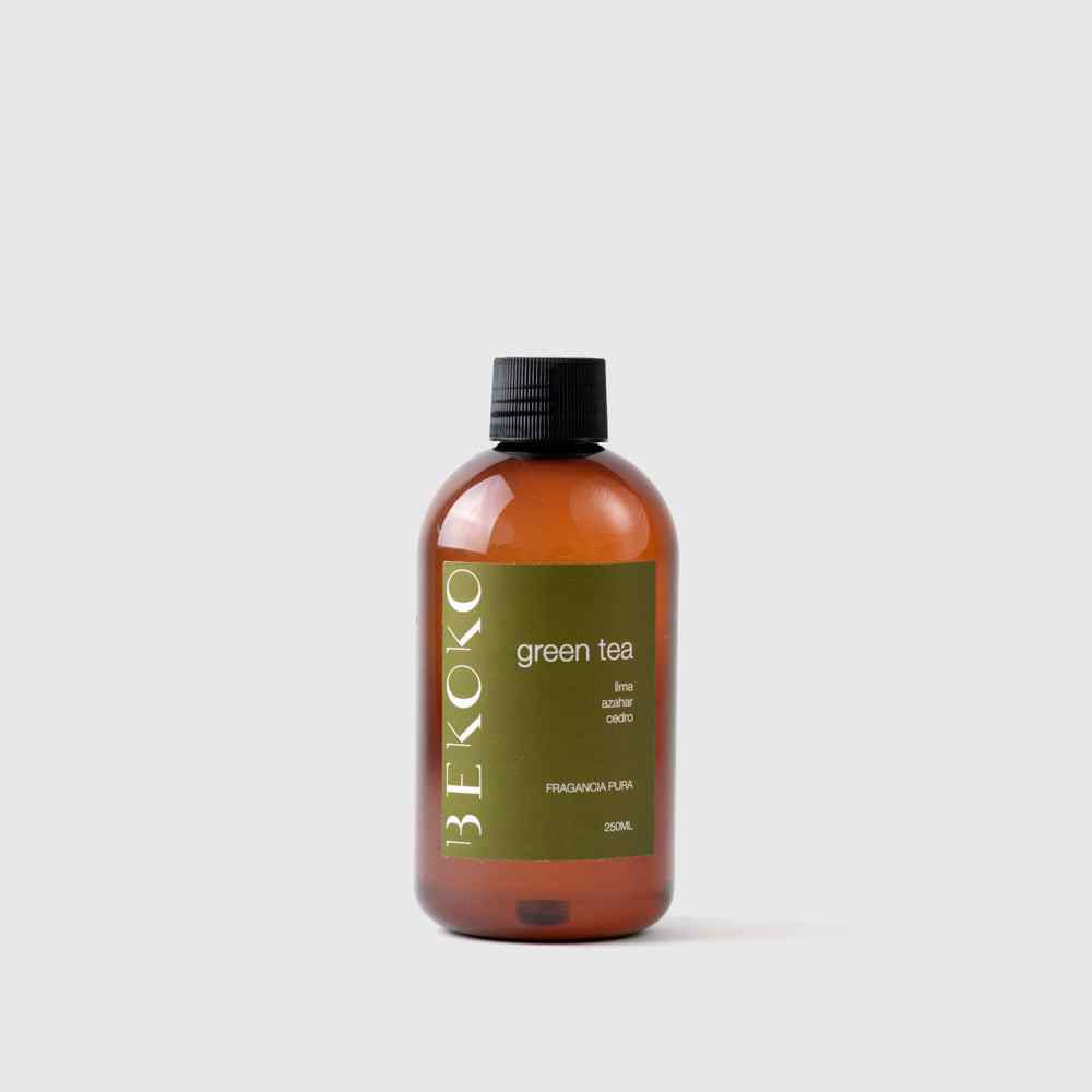 La esencia para humidificador de aromas Green Tea, tiene un aroma cítrico floral, notas olfativas a lima, azahar y cedro. Las notas olfativas a lima te envuelven con su frescura efervescente, como un rayo de sol en un día claro. El azahar aporta una delicadeza floral que inunda tu espacio con una sensación de tranquilidad y bienestar, como si estuvieras paseando por un huerto de cítricos en plena floración.¿Aún no tienes tu humidificador? ¡Encuentra en Bekoko diferentes difusores de esencias!- Notas De Salida: Cítricas De Bergamota Y Lima, Verdes De Lima, Toques De Manzana.- Notas De Corazón: Azahar, Iris, Jazmín, Muguet Y Lirios, Aromáticas De Albahaca, Jengibre Y Notas Ozónicas.- Notas De Fondo: Maderosas De Cedro Y Limonero, Notas Ambaradas.Destacado- Son una opción muy económica y eficiente de mantener tus ambientes confortables, generando una experiencia placentera y única.- Su elaboración, le permite ser duradera y consistente, proporcionando la mejor experiencia.- Fabricados con ingredientes naturales de alta calidad, SIN químicos dañinos, envases elegantes y sustentables, 100% Cruelty-Free.Beneficios de esencias para humidificadoresLas fragancias utilizadas en los difusores pueden proporcionar una variedad de beneficios para la salud y el bienestar. Algunos de los beneficios comunes incluyen mejorar el sueño para un buen dormir, promover la relajación, aliviar la ansiedad y el estrés, aumentar la concentración, mejorar el estado de ánimo y promover la claridad mental. Los aromas de las esencias son ideales para aromaterapia, creando un ambiente agradable y relajante en tu hogar u oficina, energizando ambientes y mejorando tu bienestar.¿Cuántas gotas de esencia de aromas van en el humidificador?En general, se recomienda agregar entre 10 a 20 gotas de fragancia por cada 50 ml de agua en el humidificador. Puedes ir probando para ver la intensidad adecuada para tus ambientes.Recomendaciones de UsoNo utilizar directamente sobre superficies ya que la fragancia puede ser corrosiva.