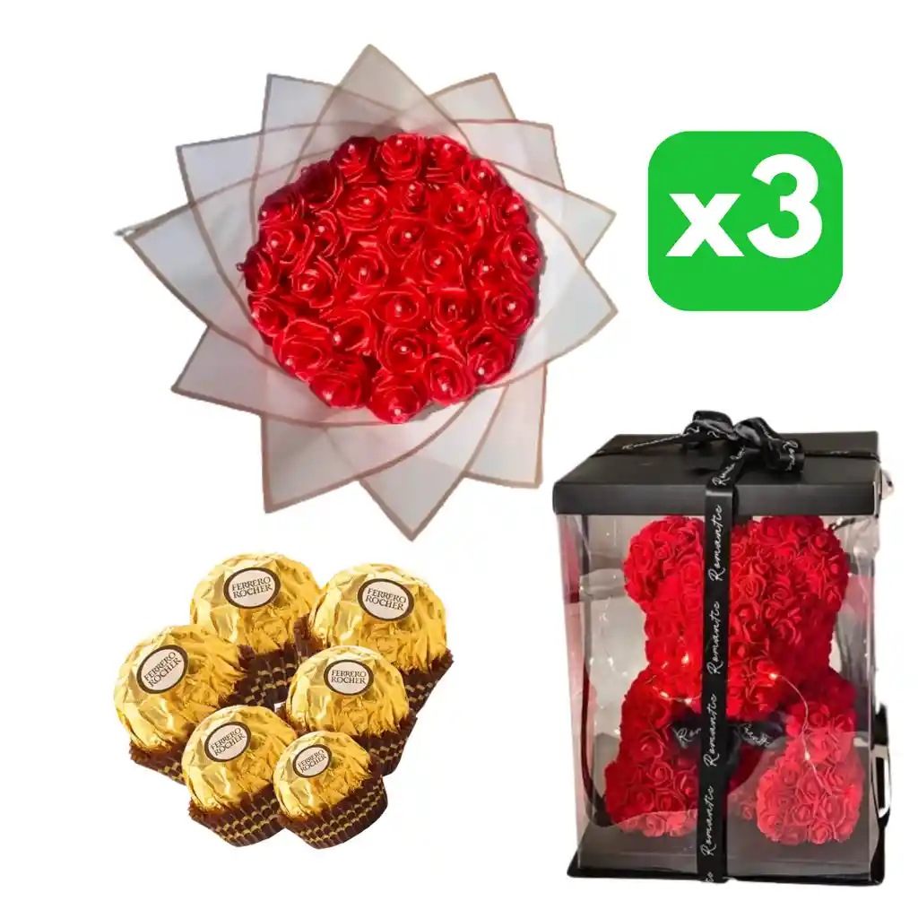 RAMO DE 20 ROSAS ROJAS OSO DE ROSAS 6 BOMBONES DENTRO DEL OSO