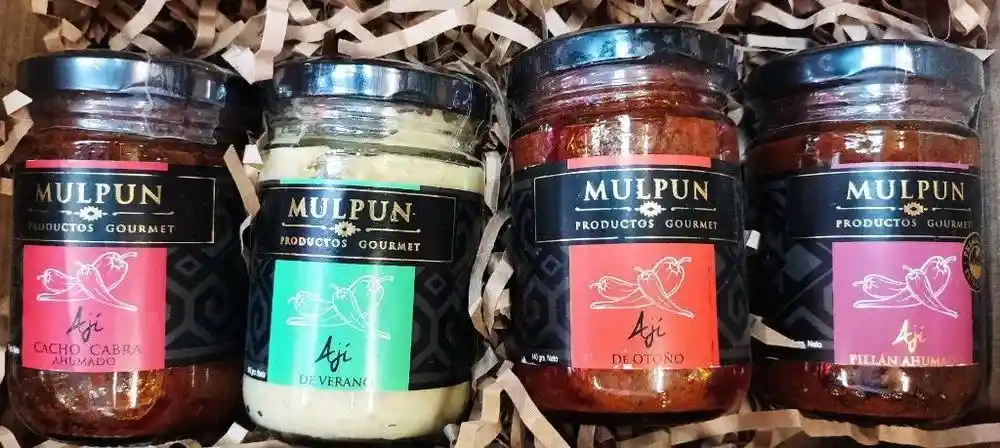 CAJA DE CARTÓN ECOLÓGICO REUTILIZABLE CONTIENE: (FOTOGRAFÍA REFERENCIAL, VER DESCRIPCIÓN) Ají Pillán Ahumado 140G Ají Otoño 140G Ají Maracuya 140G Ají de Verano 140G