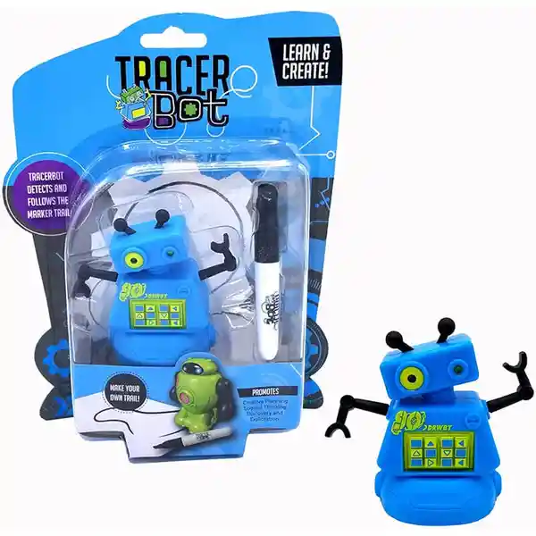 Este Pequeño Robot Azul sí Que Sabe Dónde Va. Con Sensores de Luces, el Pequeño Tracerbot Detecta y Sigue Automáticamente Las Líneas Que Dibujes Con un Plumón. Este Juguete Interactivo Ayuda a Desarrollar Habilidades Lógicas y de Resolución de Problemas. Diseña Rutas Con el Orden y Vueltas Que Quieras Para Que tu Robot Circule Por tu Mundo Imaginario. Desafía a tu Robot, ¡y a ti Mismo! Viene Con 4 Pilas, un Plumón Lavable, Papel Blanco y Rutas de Prueba. Es Durable, Pequeño, Liviano y Fácil de Llevar a Donde Quieras. Colecciona Los Robots de Distintos Colores, y Podrás Diseñar Desafíos y Carreras Para Que Compitan Entre Ellos. Edad Recomendada: 5+