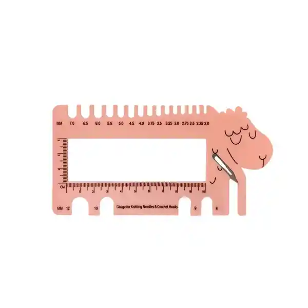 Esta regla con diseño de ovejita será indispensable en tus proyectos. Utilizala como regla, Medidor de palillos y cortador de hebras e hilos. Colores: Lila y Rosa.Medidas: 10 × 5 × 0.12 cm