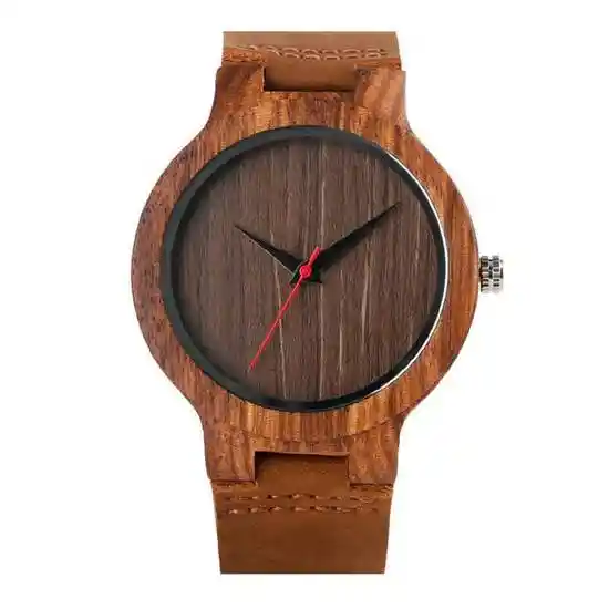 Diseño Minimalista en el Dial Con Textura de Madera Sin Marcadores de Hora. Cierre Tipo Hebilla. Sistema Análogo. Combinación de Madera y Ecocuero. Especificaciones: Material: Madera y Ecocuero. Color: Marrón. Tamaño: 26 cm x 21 cm. Diámetro de Muñeca: 16 20 cm Ajustable. Diámetro de Caja: 45 cm. 26 cm x 21 cm.