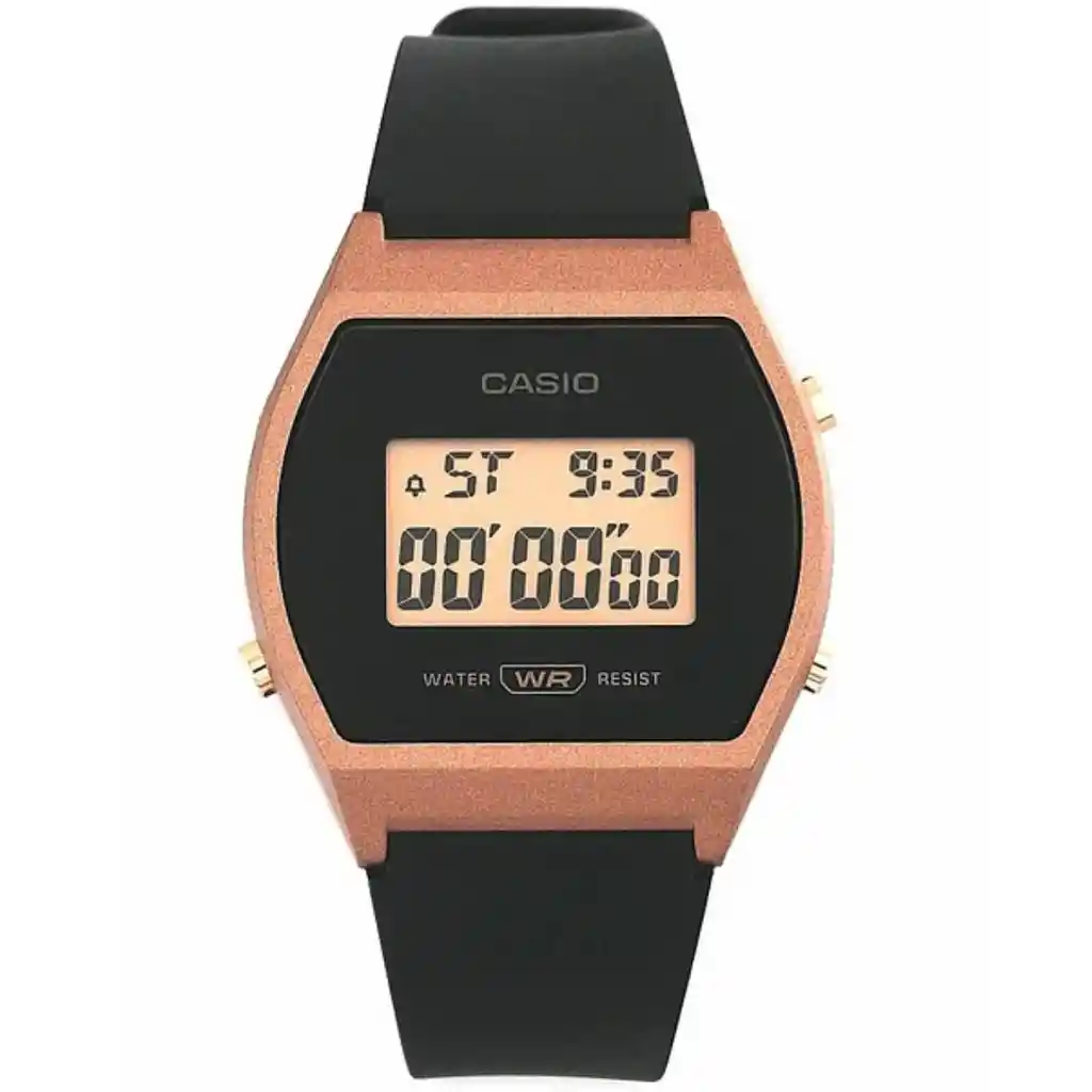 Modelo: LW-204-1B Colección: Vintage Tipo: Digital Género: Mujer Color caja: Rosé Gold Color esfera: Negro Color pulsera: Negro Material caja: Resina Material pulsera: Resina Material vidrio: Resina Cierre: Hebilla Duración pila: 3 años aproximadamente. Resistencia al agua: 5 BAR Funciones: Resplandor de retroiluminación LED, alerta de flash, cronómetro, temporizador de cuenta regresiva, alarma multifunción, señal horaria, calendario automático completo (hasta el año 2039), formato de 12/24 horas, funciones clásicas de reloj (hora, minuto, segundo). Medidas: 38,9 × 35 × 9,4 mm Peso: 24 gramos aprox.